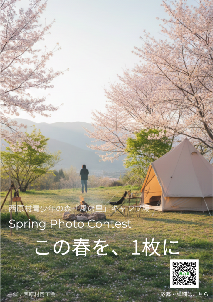 ・西原村青少年の森「風の里」キャンプ場内で撮影した写真であること。